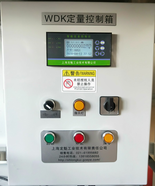 4、WDK變頻型定量控制柜內(nèi)的定量控制儀為全中文/英文液晶顯示,每次定量控制值可以根據(jù)需要任意更改,只需在定量控制儀的內(nèi)操作完成;