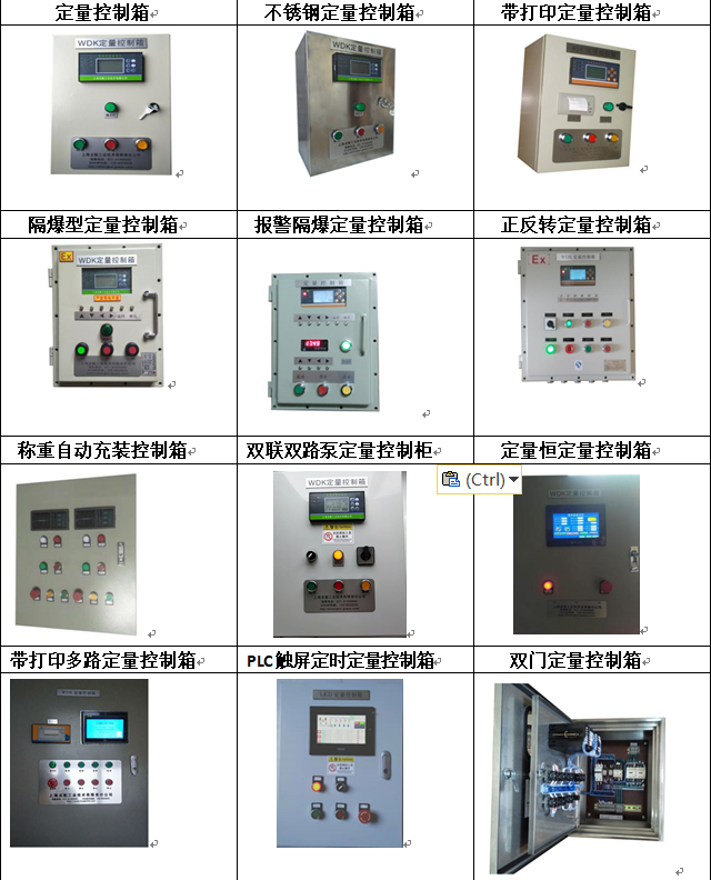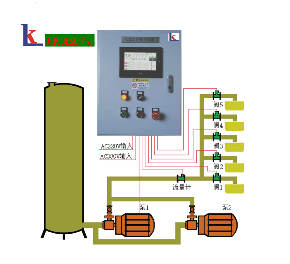 ? ? ?上海龍魁工業(yè)技術有限公司的WDK觸摸屏PLC定量控制柜(箱)及WDK觸摸屏定量控制系統(tǒng)、WDK觸摸屏PLC定時定量恒量控制柜(箱)、WDK觸摸屏PLC帶打印變頻恒量控制柜(箱)、WDK觸摸屏定量灌裝控制系統(tǒng)、WDK觸摸屏定量配發(fā)料控制系統(tǒng)的其他定量控制配套產(chǎn)品都要根據(jù)現(xiàn)場流體的物理/化學屬性、周圍環(huán)境、以及具體要求來選擇合適的高精度流量計(如電磁流量計,渦輪流量計,齒輪流量計,質(zhì)量流量計等)來測量流量,?根據(jù)測量介質(zhì)、管道口徑、流量范圍、控流量大小、電機與泵的速度、防腐、防爆、防護等級等參數(shù)和要求進行設計及配置選型WDK觸摸屏定量控制柜(箱)及WDK觸摸屏定量控制系統(tǒng)